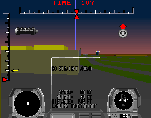 same pseudo-3D graphics and dots to represent the runway lights. Bringing this genre to arcade and utilising unique joystick controls along with the sound