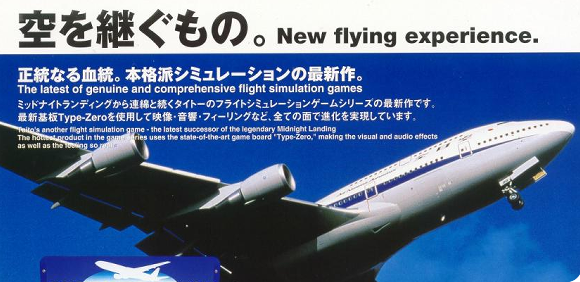 Landing Gear (ランディングギア ) released in 1996 on the Taito JC system. You can pilot a trainer aircraft, small jet aircraft, seaplane, passenger plane, jumbo jet, fighter aircraft and space shuttle.