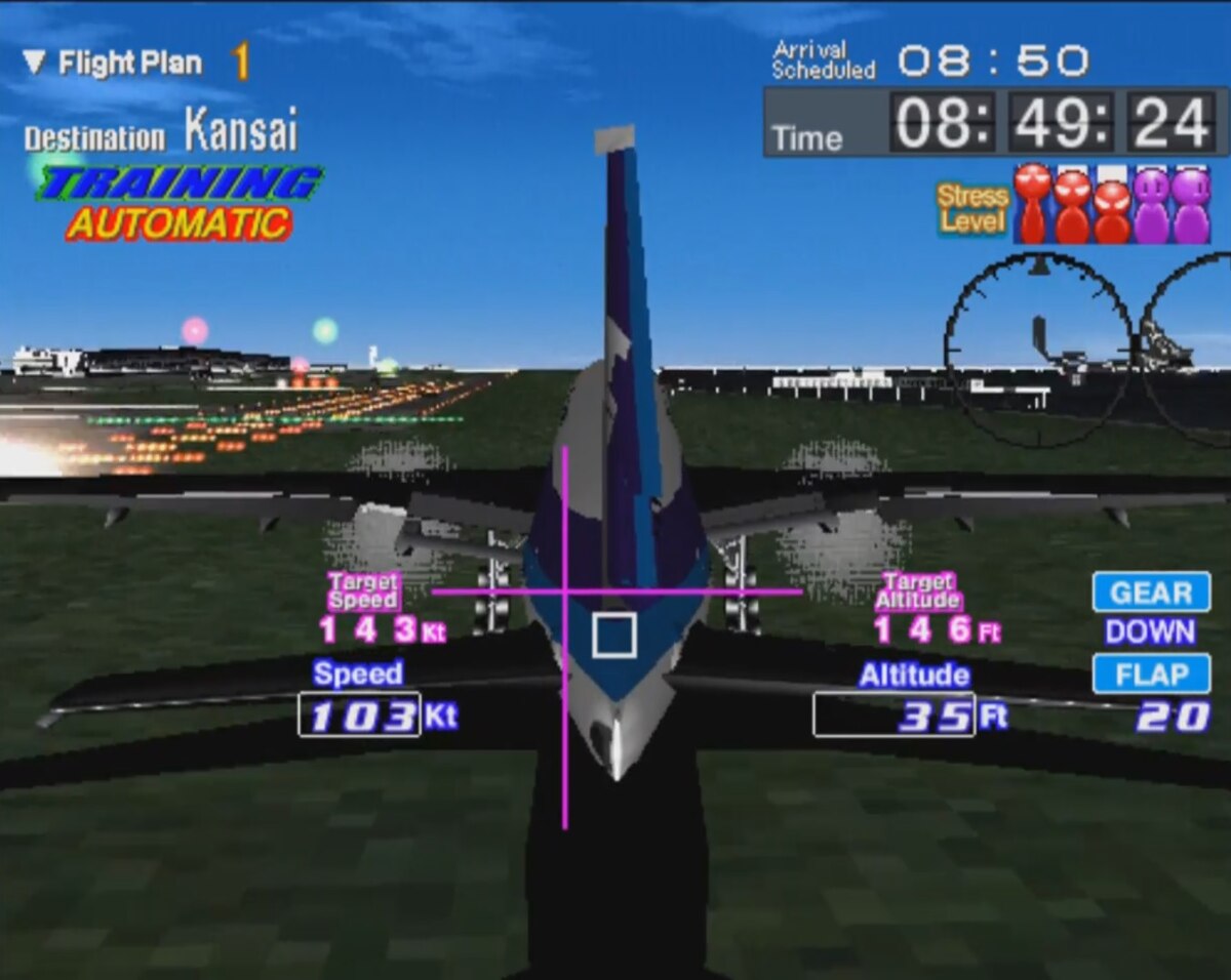 The game was made in collaboration with Japan Airlines (JAL) and you play as a beginner pilot for them and take off then land at various real-life airports.