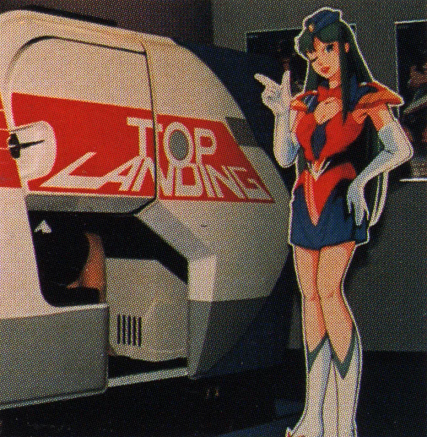 Standees of Reika from Time Gal as a flight attendent were also made to promote the game.